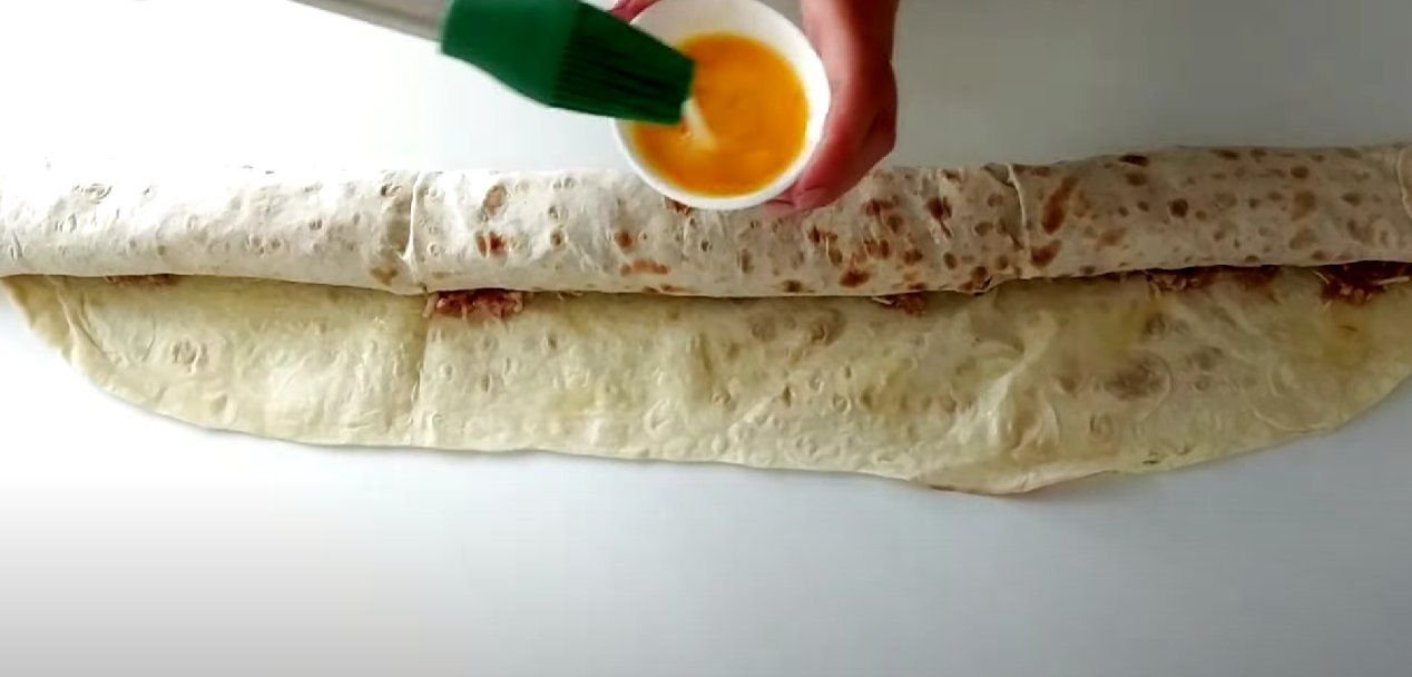 ШАГ 4: Край смазываем яйцом, чтобы не разворачивалось.