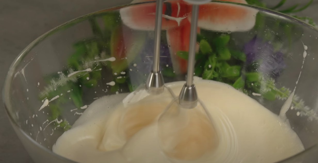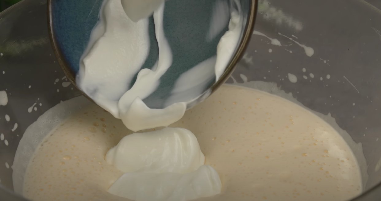ШАГ 3: Добавляем сметану или йогурт. Взбиваем.