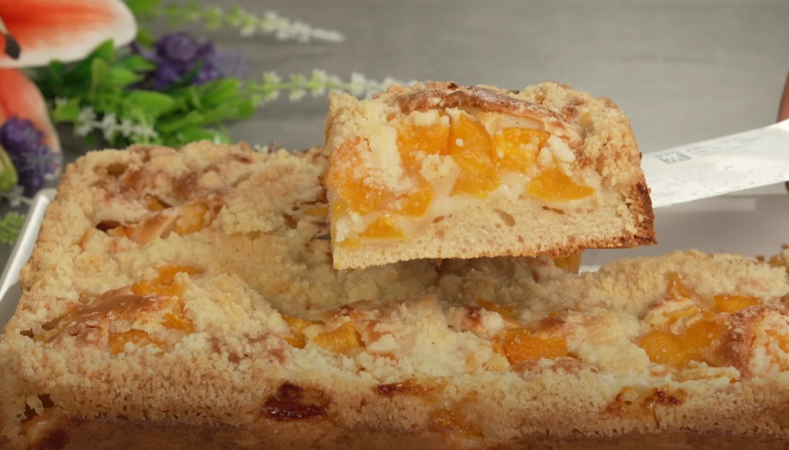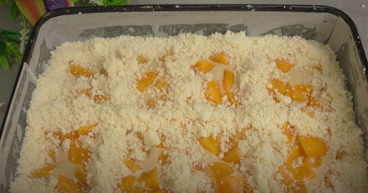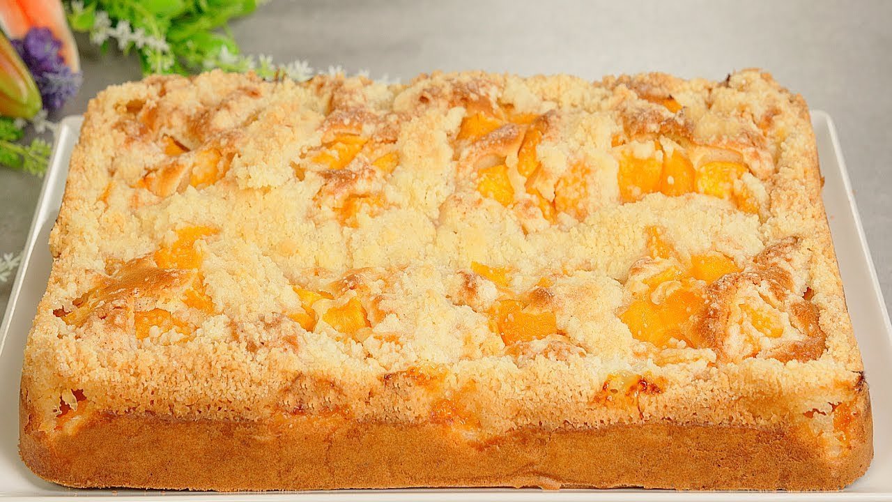 Получается невероятно аппетитно! Такое лакомство не хуже торта. Фрукты, конечно же, можно брать любые, но именно с персиками получается просто волшебно.