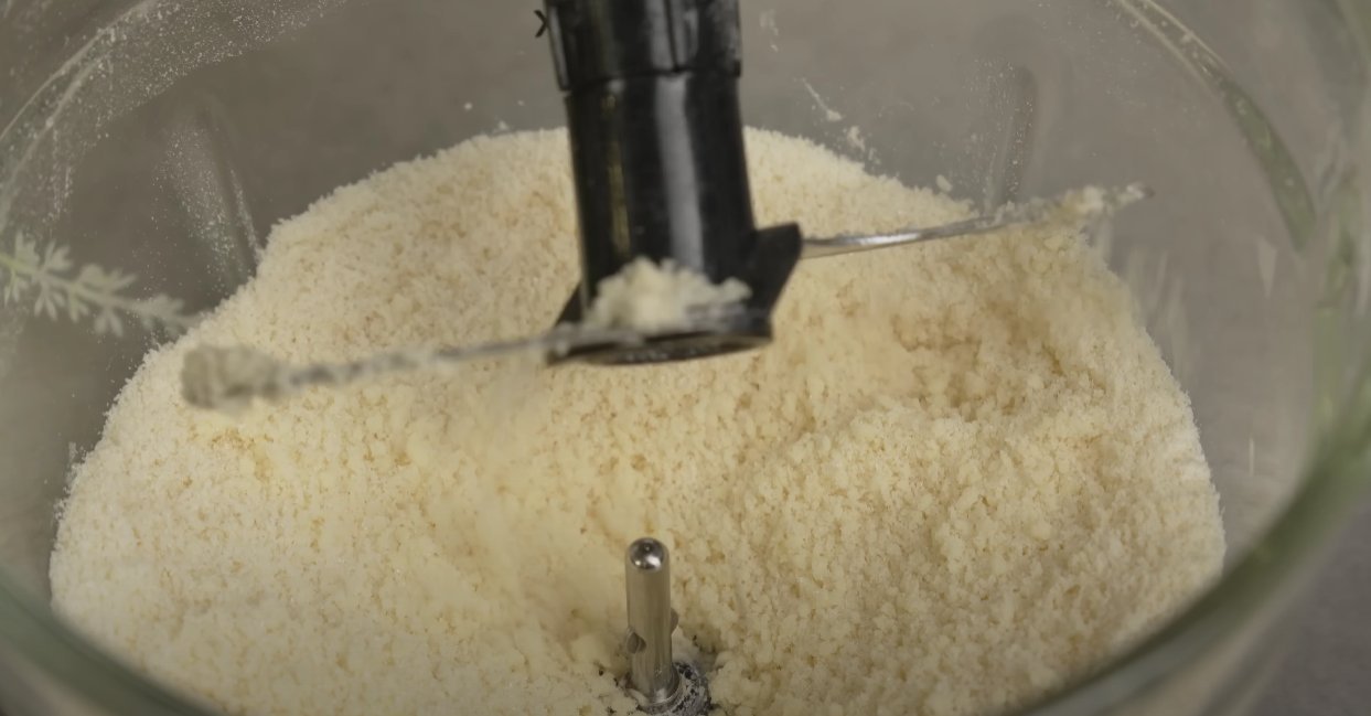 ШАГ 6: Приготовим посыпку — муку перебьём с сахаром и сливочным маслом в чаше блендера.