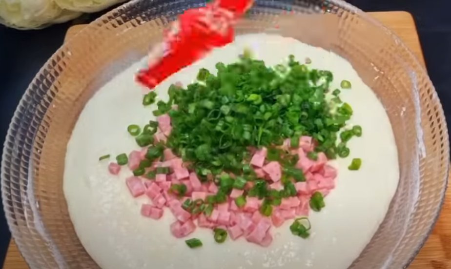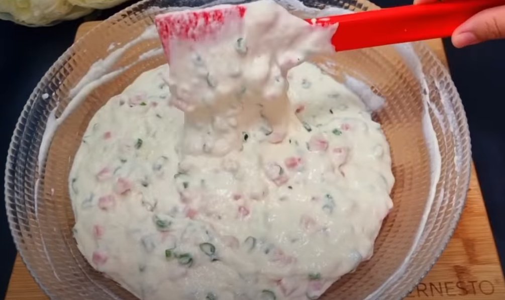 4. Добавить начинку прямо в тесто. Хорошо перемешать. Вот основа для пирожков и готова.