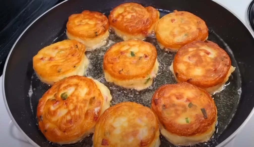 6. Пирожки жарить на среднем огне с двух сторон до полной готовности. Жарить также, как оладьи.