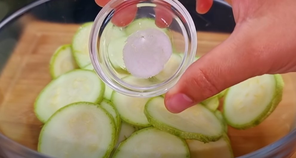 - Посолите цукини, добавив 0,5 чайной ложки соли, и оставьте на 10 минут. Затем вытрите цукини с помощью бумажных полотенец или чистой ткани, чтобы удалить излишки соли и влаги.