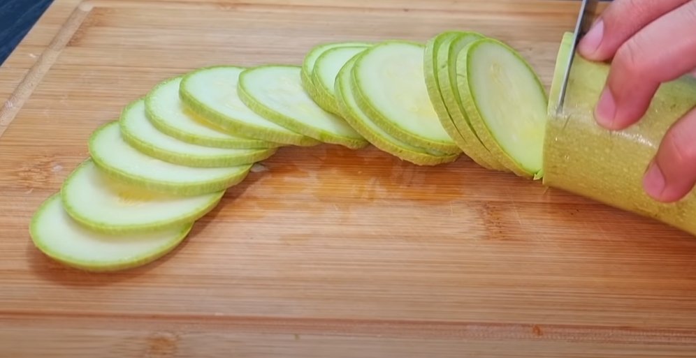 - Омойте цукини и нарежьте их на тонкие кружочки.