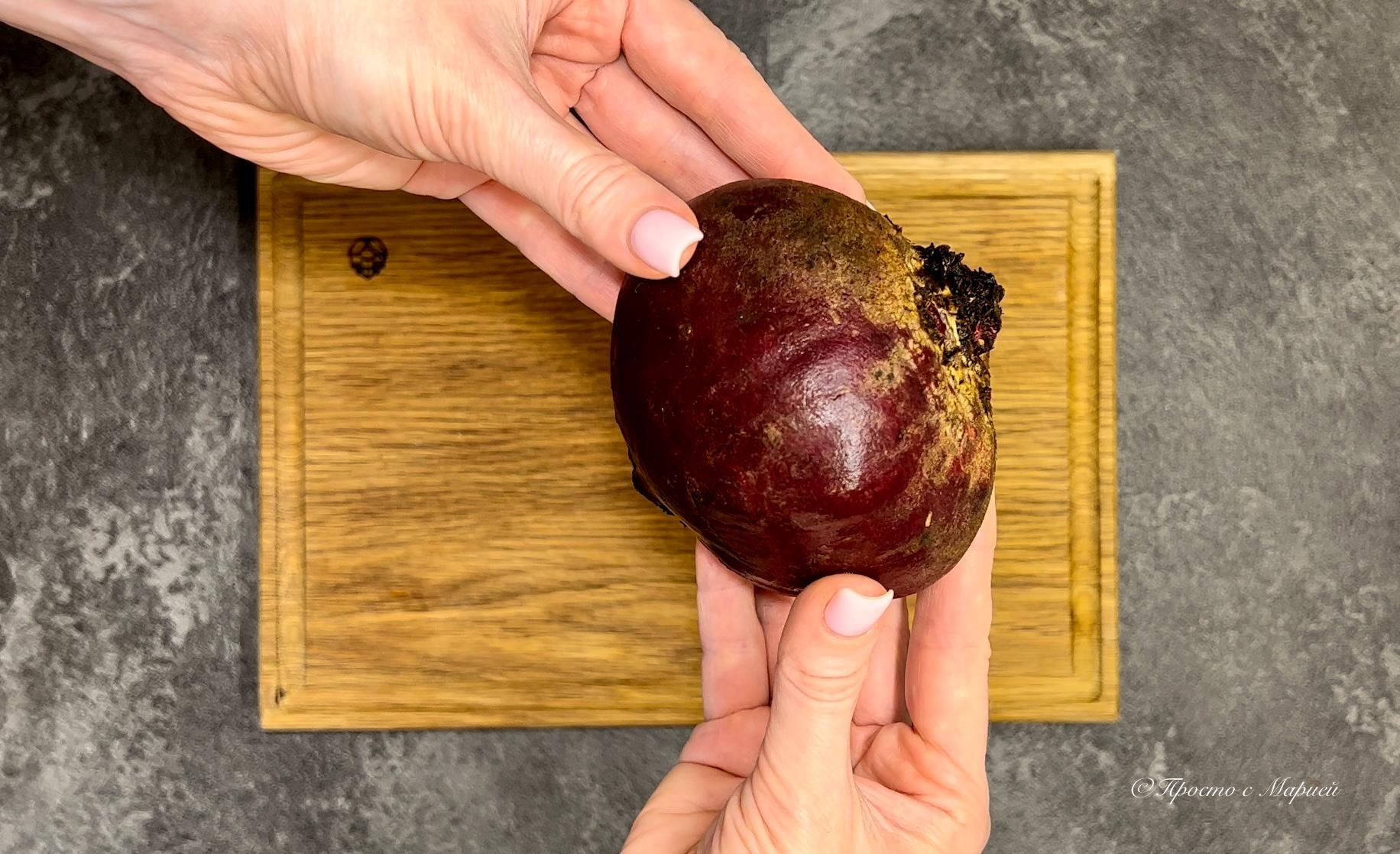 Первым делом подготавливаем свёклу. В идеале её лучше запечь в духовке: так она будет значительно вкуснее и сочнее!