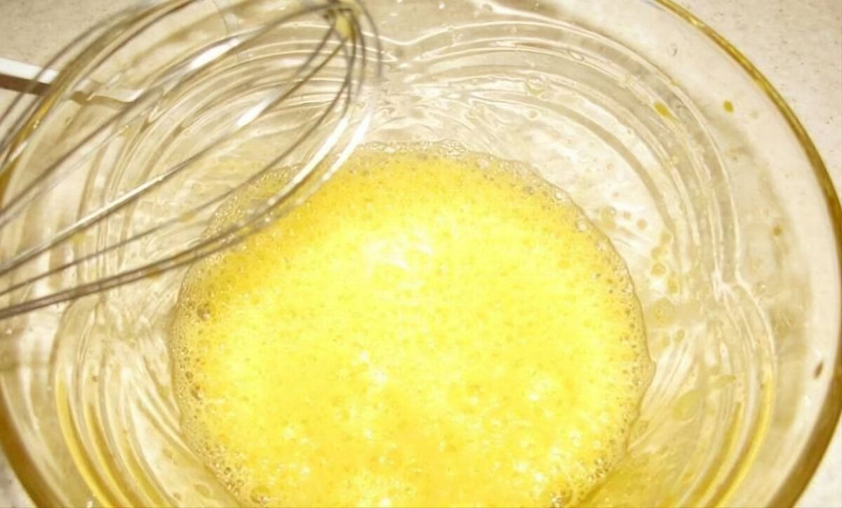 1. Яйцо взбиваем венчиком и перемешиваем с сахаром и солью.