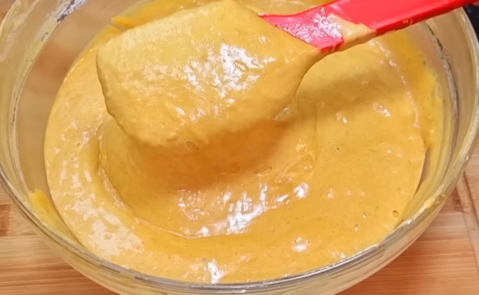 5. К полученной массе добавить 1,5 стакана муки и снова тщательно перемешать до однородности, обязательно без комочков.