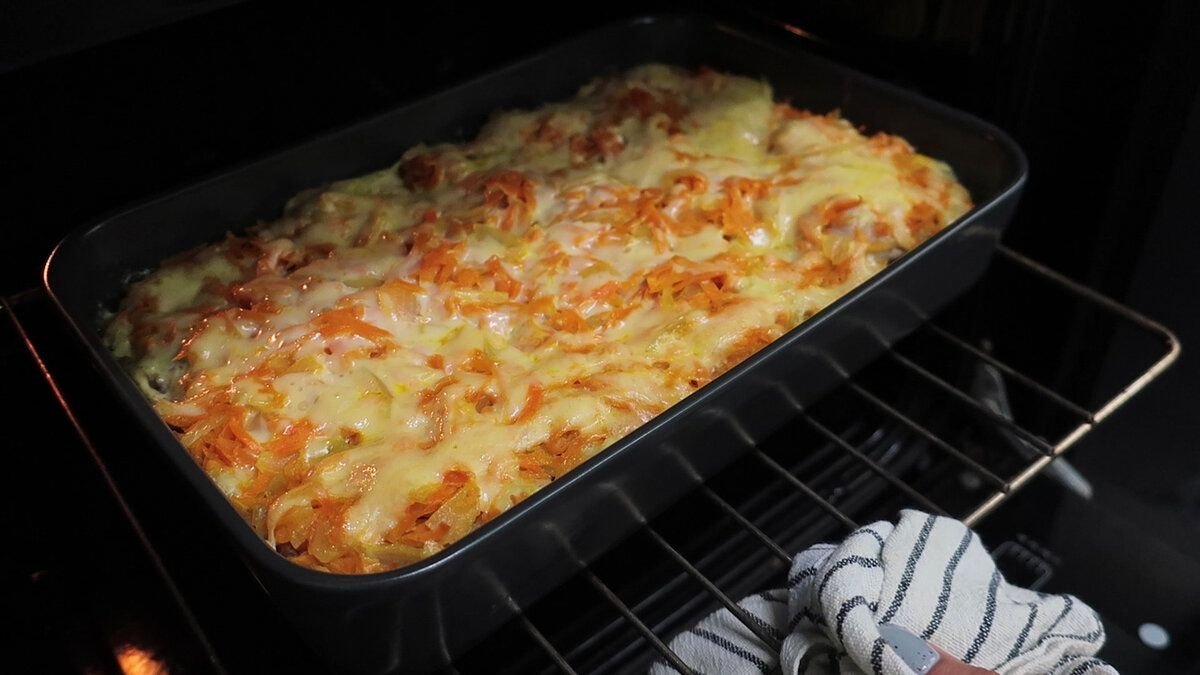 Посыпаем 100 г тертого сыра, но вполне можно обойтись без него.