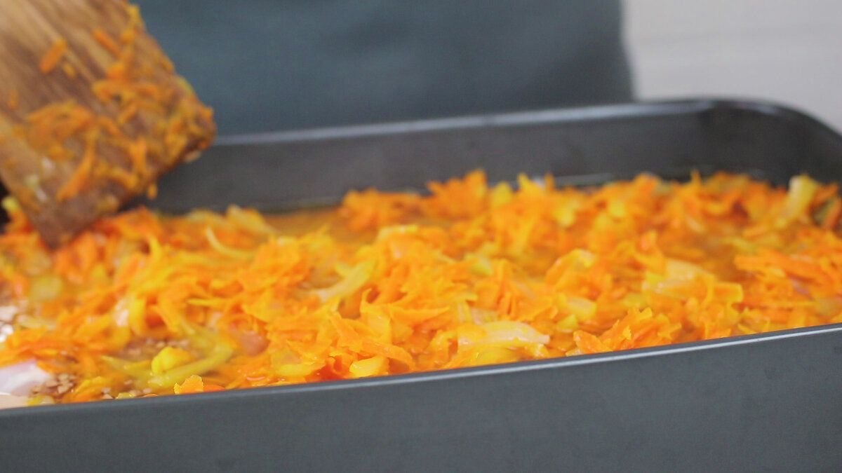 Сверху выкладываем тушеные овощи.