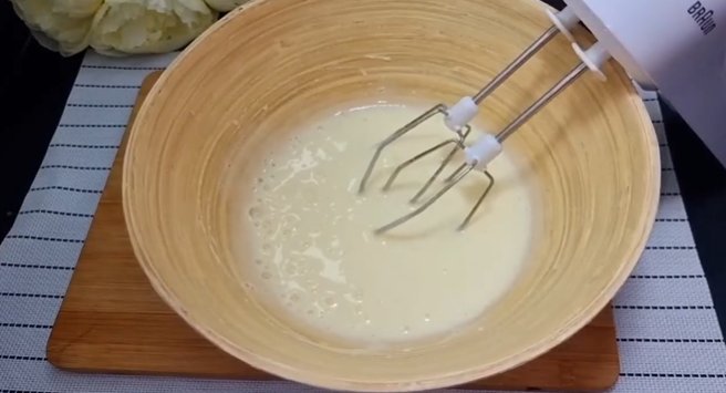1. Итак, взбиваем яйца с сахаром и ванильным сахаром (по желанию) миксером в течение 3-х минут. Этого будет достаточно.