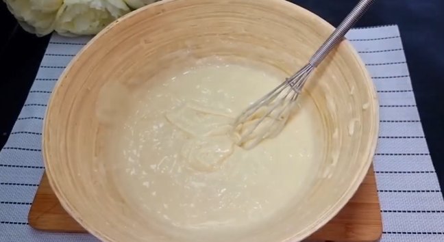 3. Далее вводим сухие ингредиенты: муку и разрыхлитель. Лучше замесить венчиком, но можно и миксером. Если используете миксер, то сначала замесите выключенным миксером, а потом уже на полных оборотах, чтобы мука не разлетелась по сторонам.