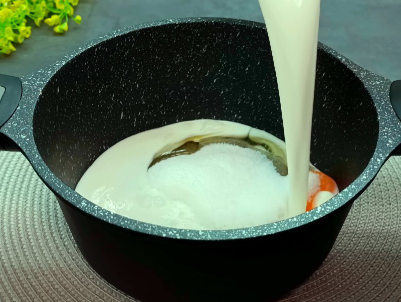 ШАГ 7: Для крема смешиваем яйцо, соль, сахар, ваниль и молоко.