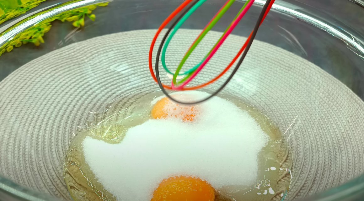 ШАГ 1: Яйца размешиваем с сахаром, ванилью и щепоткой соли.