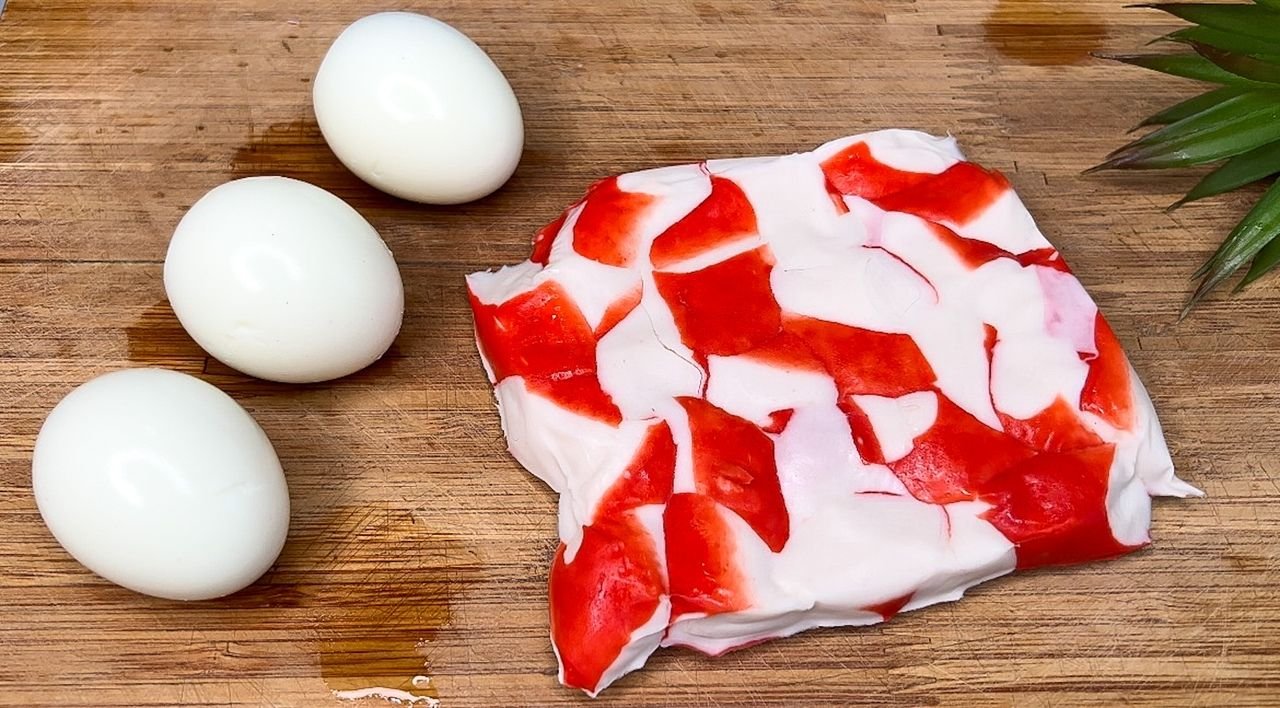 2. Четыре яйца отвариваем в крутую, остужаем и мелко нарезаем.