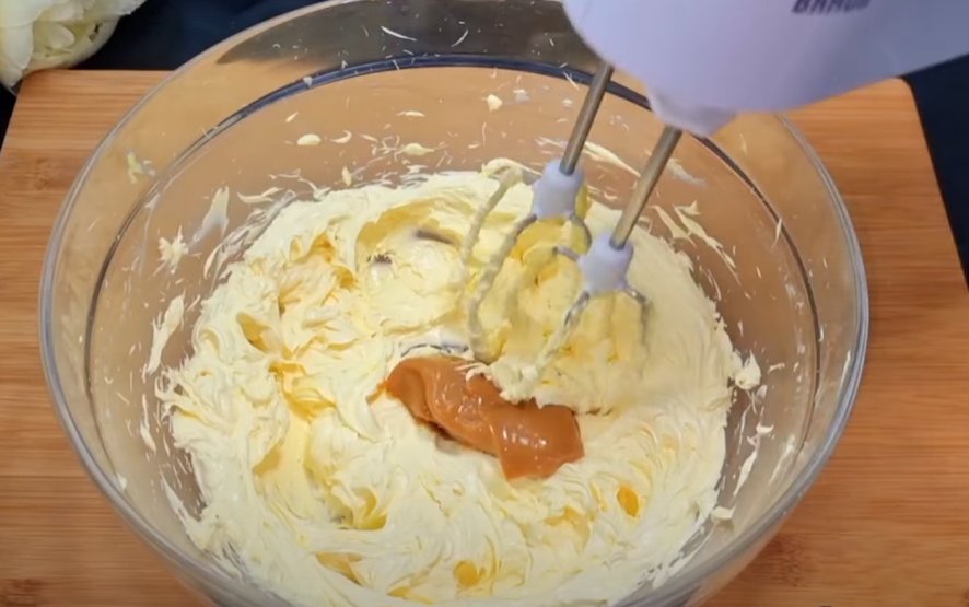1. В глубокой посуде взбить сливочное масло 250 гр., примерно 3-4 минуты до густоты.