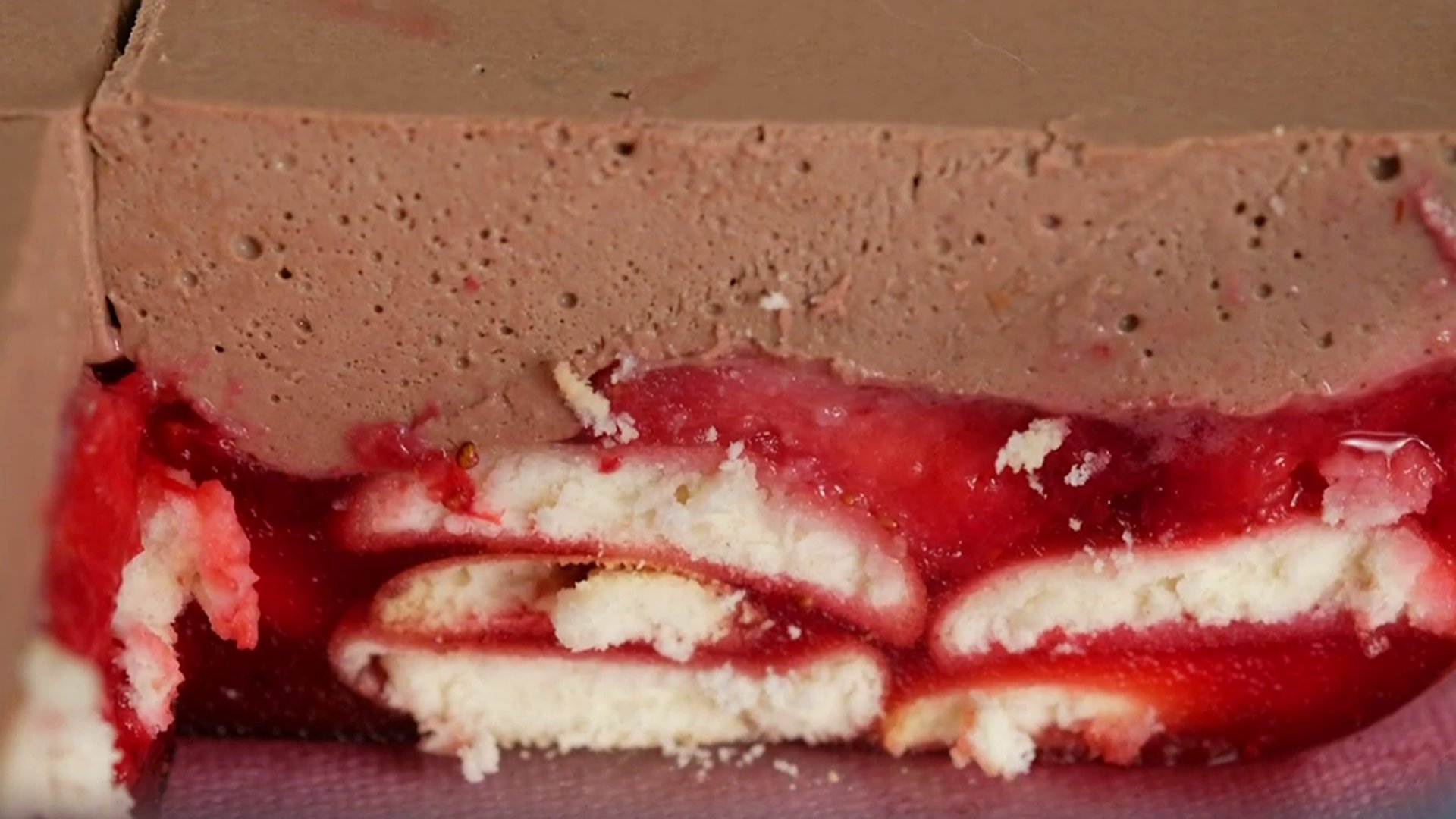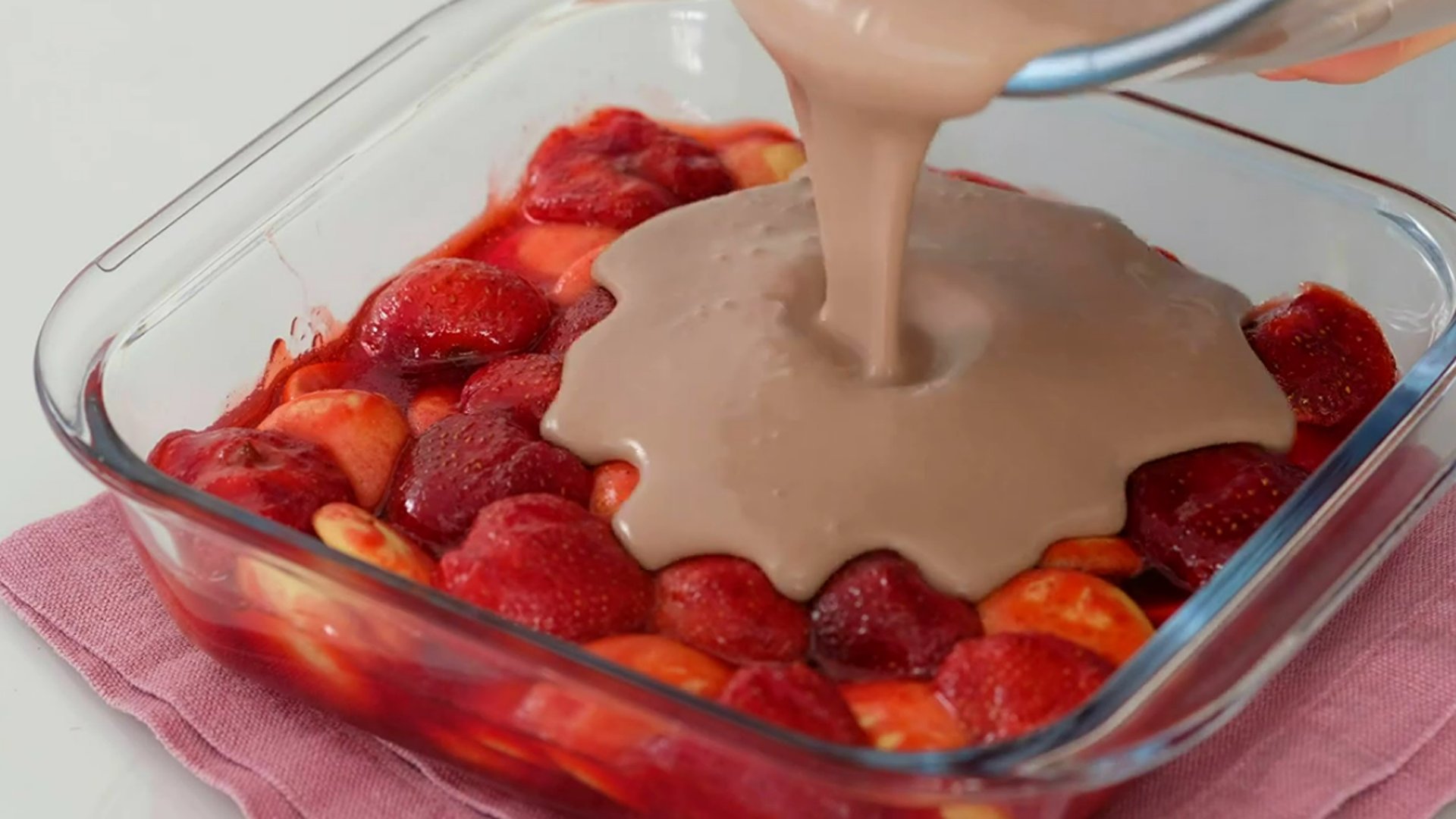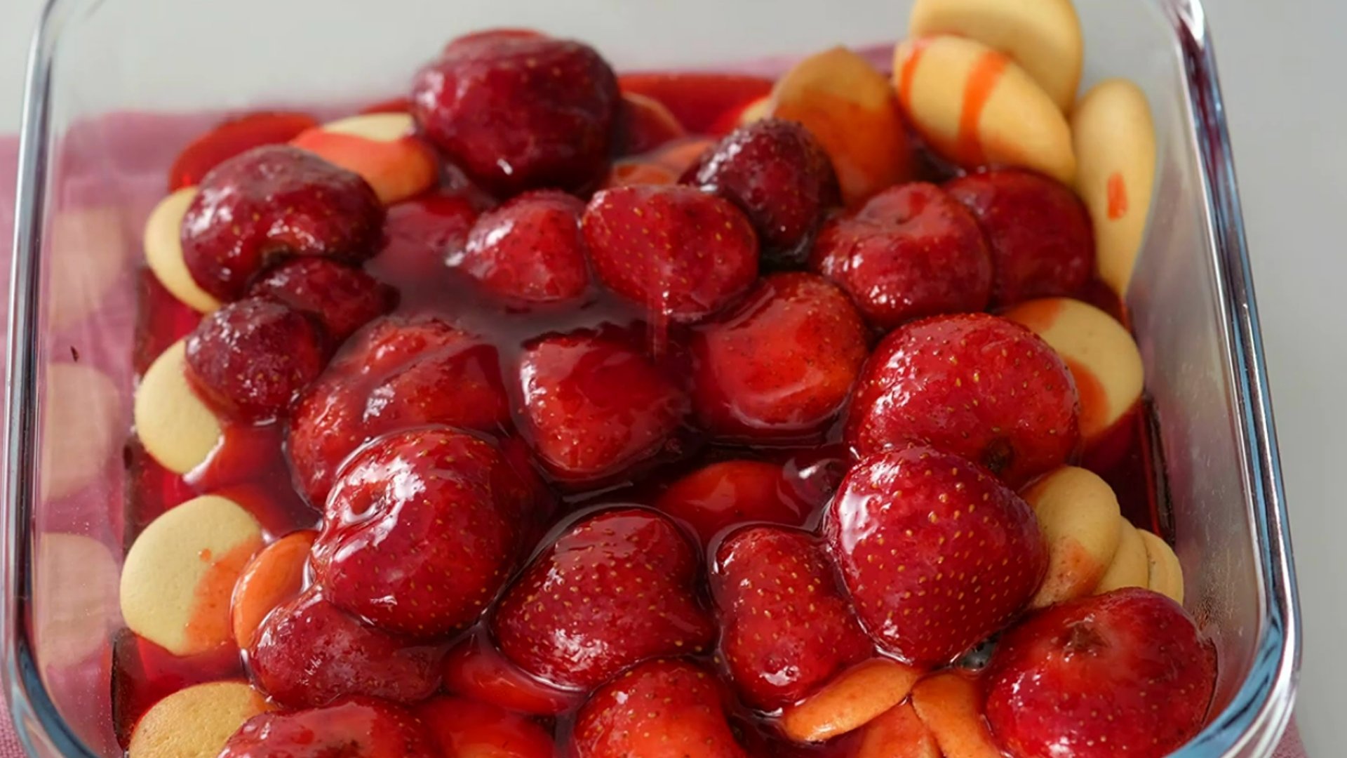 7. Перекладываем клубнику в форму. Слегка разравниваем. Даем остыть до комнатной температуры и убираем в холодильник.