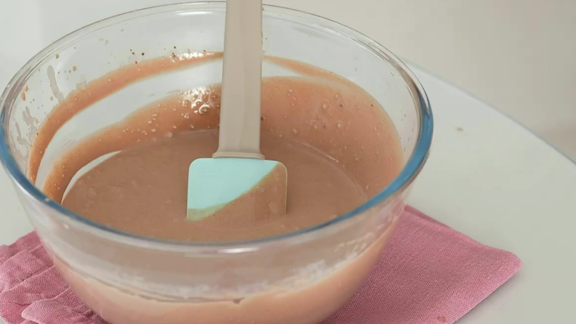 11. Желатин растапливаем на водяной бане или в микроволновке и постоянно работая миксером вливаем его тонкой струйкой в творожную массу.