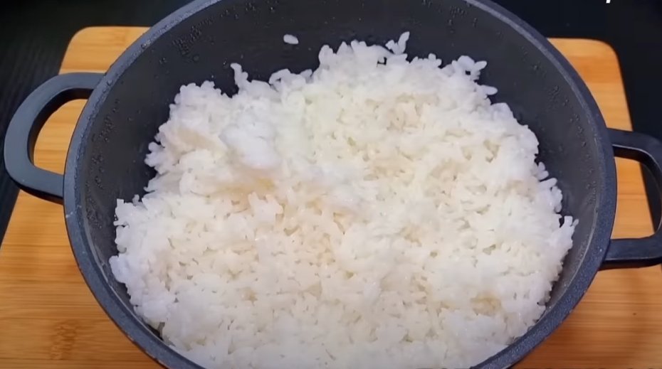 1. Сварить рис несливным способом, для этого на 400 гр. риса взять 600-700 мл воды. Сразу добавить соль. Варить на среднем огне до готовности. Дать слегка остыть.