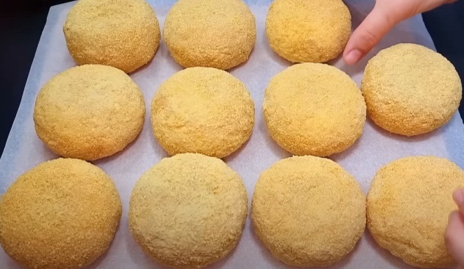 6. Для панировки взять 3 сырых куриных яйца в одной миске, муку – в другой, панировочные сухари – в третьей. К яйцам добавить немного соли и перца, взбить их вилкой. Каждый рисовый шарик обмакнуть сначала в муку, затем в яйцо, затем – в панировочные сухари.