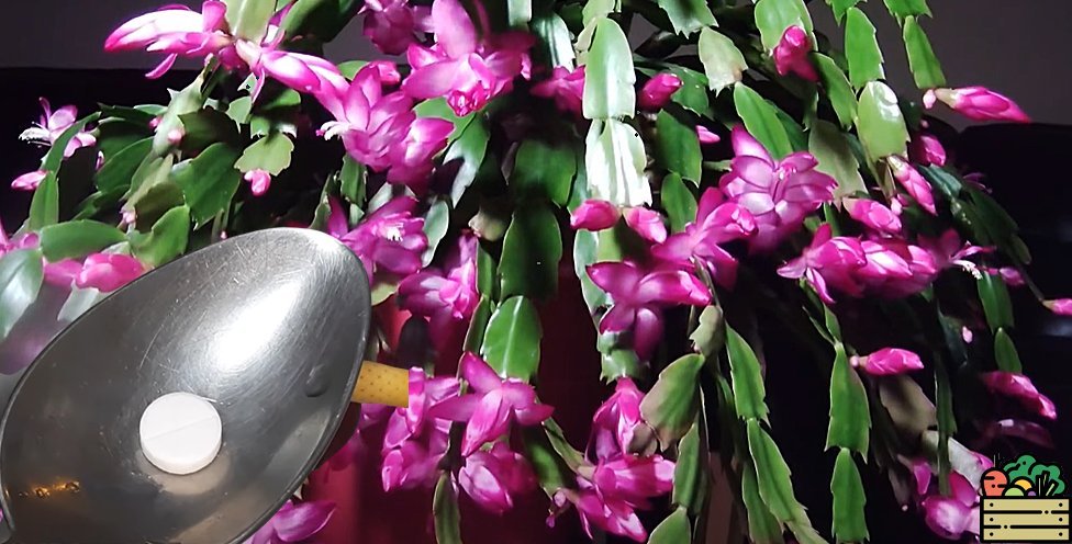 Тот декабрист, который получал такое питание, цвел намного сильнее и на 10 дней дольше. И сейчас он готовится ко второй волне цветения, что просто замечательно. На 1 л. воды нужна всего 1 таблетка аспирина. Вот такая вот подкормка.