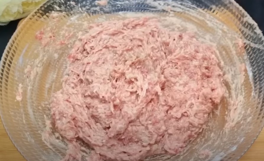 2. Репчатый лук мелко порезать или измельчить в куттере до состояния пасты. Добавить к фаршу. Далее всыпать специи – перец по вкусу и чайную ложку паприки. Тщательно перемешать до однородной массы.3. К этой массе добавить немного муки и снова перемешать.
